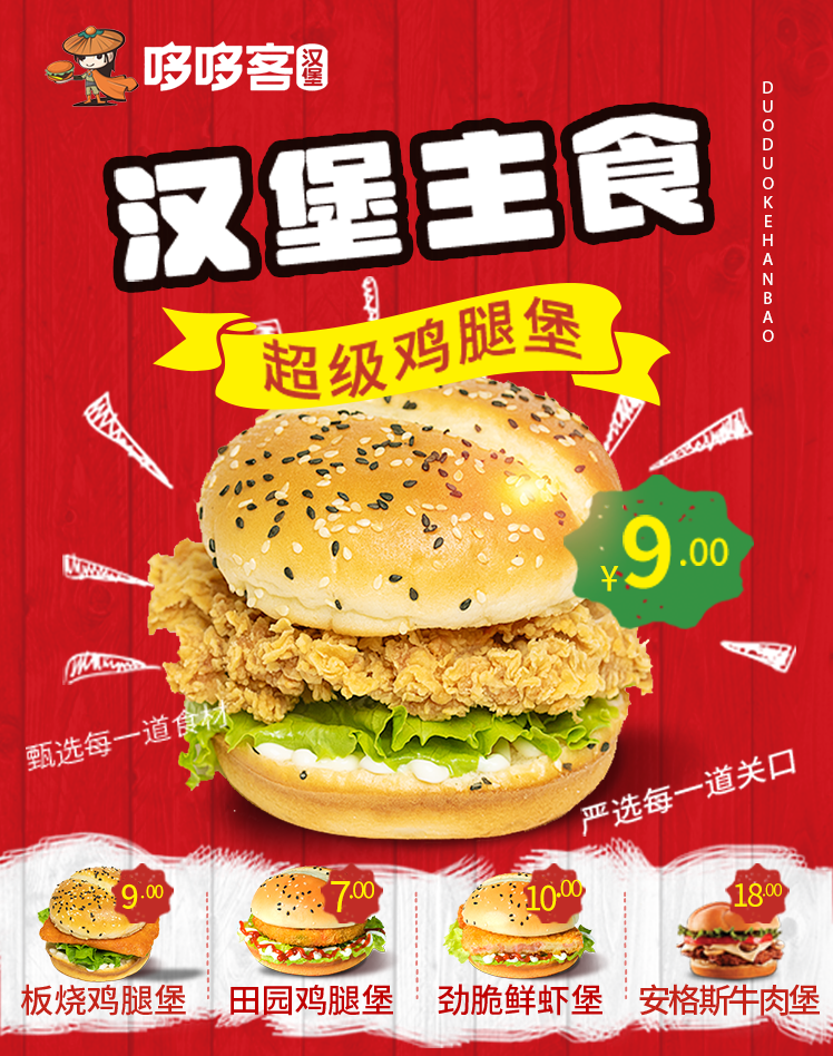 哆哆客漢堡始創于2016年,為河南聚慧德餐飲管理有限公司旗下核心餐飲品牌。品牌專注提升消費者用餐體驗,在品類細分時代準確把握產品趨勢和消費者喜好,成為西式快餐品類新起之秀。